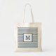 Bolso De Tela Rayas azules oscuras y blancas con monograma perso