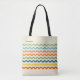 Esta bolsa de dos caras, clásica, con tote, presenta una versión retro-moderna de rayas con una onda de ric rac en tonos rojos, verdes, naranjas, azules y amarillos sobre un fondo blanco envejecido. Una línea de texto editable permite una fácil personalización con un nombre u otra cosa.