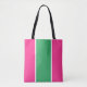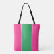 Este diseño deportivo y fresco presenta una franja central vertical de color verde marino realzada con franjas blancas delgadas contra un fondo rosa brillante.