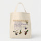 La receta del néctar del colibrí se exhibe prominente en la esta bolsa de asas del ultramarinos junto con una multitud de hummers coloridos. ¿Qué mejor manera de educar a la gente para hacer su propio Audubon aprobó el néctar del colibrí que cuando le pegan en línea en el supermercado y alguien comenta respecto a su tote precioso?