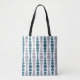 Esta bolsa de tote tiene un diseño moderno de mediados de siglo de rectángulos verde azulados y grises redondeados en tamaño creciente y decreciente corriendo verticalmente sobre un campo de blanco.