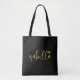 Una elegante bolsa negra moderna con nombre en guión dorado y corazón que es perfecta para una propuesta de dama de honor. Tus damas de honor pueden llenar su tote con lo esencial para los viajes de la despedida de soltera, o con lo esencial para llevar la mañana de la boda.