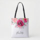 Puedes regalar esta hermosa bolsa de té personalizada con vibrantes flores en tonos rosa y crema y personalizada en letras de moda a damas de honor, amigos o para ti. ELEMENTOS COINCIDENTES EN nuestra tienda.