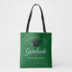 Esta elegante bolsa de tote de personalizado verde presenta tipografía de moda blanca y dorada bajo un nombre de instituto o universidad para la clase de 2023. Personalizar con tu año de graduación bajo la encantadora caligrafía para un gran regalo de graduación personalizado.
