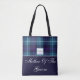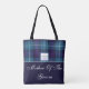 Bolsa de mano Regalos para padres de boda Tartán Madre del novio Bolsa de mano elegante y de moda con capacidad para personalizar, presenta "nombre y fecha personalizados" en tartán de cuadros azul celadón / azul oscuro en la parte superior y "madre del novio" en fondo azul oscuro. Personalice esta hermosa bolsa como un regalo maravilloso para la madre del novio agregando su nombre o texto / cambiando la fuente, el color, el tamaño y la posición.