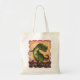 El Tote de Presupuesto de Dinosaurios T-Rex para el Desfile Animal de ITD presenta el arte original de una bonita Excursión de Tyrannosaurus desde el frente y la parte trasera en un paisaje prehistórico con un volcán humeante, un cielo naranja amarillo texturado y un alegre borde violeta. Pintado por Traci Van Wagoner, una ilustradora con talento para niños, este bonito dino de T-Rex es genial para niños de todas las edades, y seguro que le traerá una sonrisa a los rostros de todos los amantes de los dinosaurios en su lista de regalos.