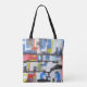 Moderna Bolsa De Tote Colorida. Destacar con esta bolsa u otras de los trabajos de felación. Diseño de mi pintura titulada "Reflexión de ciudad rota". Puede cambiar el tamaño y el tipo. El diseño se puede transferir a otros elementos.
