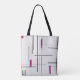 Elegante Geométrico / Resumen Arte Lineal Negro, Plata con Fuschia Accents Tote Bag Hacer una declaración elegante con esta bolsa de tote geométrica de moda. Con un patrón de intersección de líneas negras y plateadas con impactantes acentos magenta sobre un fondo blanco, esta bolsa de tetas ofrece un aspecto moderno y de moda para el uso diario. Fabricado con materiales duraderos de alta calidad, ofrece un amplio espacio y mangos robustos para llevar cómodamente sus productos básicos diarios.