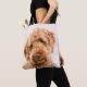 Un retrato de estudio de un perro doodle dorado mirando la cámara.