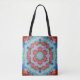 Bolso De Tela Retro Mandala Flor Azul Rojo y Verde azulado
