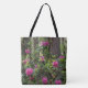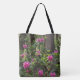 Tu elección de elegante bolsa de té o bolso de cuerpo cruzado con una impresión completa que muestra una foto de grandes rododendros rosados floreciendo en un bosque. ¡Un bonito diseño floral! Seleccione el estilo y tamaño de su bolso.