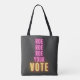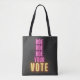 ¡Muestra tu apoyo a la exigencia de igualdad de derechos para todos votando Pro-elección en noviembre! Este diseño de tipografía para bolsa de mano presenta letras neón rosadas y amarillas en un fondo negro con el mensaje "Roe Roe Roe tu voto".