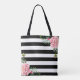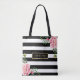 Esta bolsa de té personalizada "Romantic Pink Floral Black Stripes" es una excelente bolsa de todos los días para llevarte a lo largo del día. Llevar a un personalizado con la bolsa de tocador y dirigirse a la calle, al supermercado, a la escuela o al parque. Es una manera perfecta de mostrar tu propio estilo.