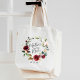 Un regalo dulce y elegante para la madre de la novia, el tote presenta una corona de color rosa borgoña con una "madre de la novia" inscrita en el interior con escritura con letras a mano. Personalice con la fecha de boda o el nombre del destinatario debajo.