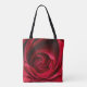 Cerca de una bella rosa roja en este tote, casi se puede oler la fragancia