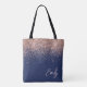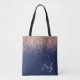 Bolso Monograma Elegante Rosa Dorado y Rosa Pálido Azul Marino con Brillo y Glitter Falso. Este Bolso se puede personalizar para incluir tu inicial y primer nombre y regalarse en Navidad, Cumpleaños 16, Despedida de Soltera o Boda.