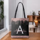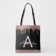 Bolso de Rosa Oro y Negro Brillo Falso y Glitter que Cae Monograma Elegante. Este bolso se puede personalizar para incluir tu inicial y nombre y regalarlo en Navidad, Cumpleaños Sweet 16, Despedida de Soltera o Boda.