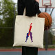 Este diseño es de una línea de rugby. Tiene dos jugadores levantando a otro en el aire que atrapan la pelota de rugby. Este diseño de línea de rugby se ve genial en esta bolsa de Tote