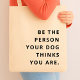 Difundir amabilidad y positividad con el juguetón diseño "Sé la persona que tu perro piensa que eres". Un dulce recordatorio de amor incondicional y lealtad, esta moderna pieza tipográfica es perfecta para mamáes de perro, papás de perro y todo aquel que adora a su mejor amigo de cuatro patas. Alegre, edificante y lleno de corazón.