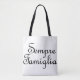 Las palabras italianas para Siempre Familia son Sempre Famiglia. Hecho en escritura negra en un tote impreso en todo el mundo. Se puede agregar el fondo.