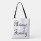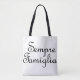 En el frente - las palabras italianas para siempre familia son Sempre Famiglia. En la espalda siempre la familia en inglés. Hecho en escritura negra en un tote impreso en todo el mundo. El color de fondo puede cambiarse a cualquier color que elija.
