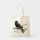 Un cuervo que se sienta en una rama con las palabras "señora loca del cuervo" debajo.