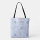 Carry your belongings in sophisticated winter style. This versatile tote bag displays a clean, elegant pattern of intricate blue ornaments and detailed silver angels on a light blue, snowflake-adorned background. A stylish and serene accessory for everyday use throughout the cool season. Add your name or message for a custom touch.