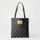 Otra linda bolsa de tote de JessicaAmber. Todo esto en una bolsa de papel con un patrón de diamantes falsos en tejido en cuero negro. Una asombrosa ilusión de un efecto 3D, creado en Illustrator. El punzonado falso se hace en rosa caliente, que se combina con el negro para una extraña sensación. Está adornado con una placa metalizado falsa y texto editable para agregar tu nombre. El texto tiene un efecto grabado en relieve. Un gran regalo para tu esposa o novia que ama las cosas glamorosas y el combinado de colores de negro y rosa. Para más accesorios reales, visita mi tienda, Zazzle.com/JessicaAmberArtist | Para órdenes de personalizados, envíame un mensaje a Zazzle