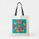 Un cartel de paz floral en tonos rosa, amarillo, naranja, violeta, verde, blanco y negro adorna esta divertida bolsa de té.