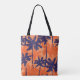 Bolso De Tela Silueta de palmera azul, fondo naranja