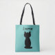 Añade un nombre a este lindo gato negro en una bolsa de tocador.