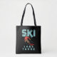 Gráfico que dice: Ski Lake Tahoe. El divertido diseño del esquí para las próximas vacaciones de esquí en las montañas en invierno.