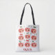 Una divertida y adorable bolsa de tote para niños personalizada incluye cerezas al estilo kawaii con caras sonrientes dulces, mejillas rosadas y pequeños arcos. Rodeado de suaves flores y corazones pastel, este encantador diseño ofrece un ambiente alegre y divertido a las habitaciones de los niños y los bebés.