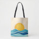 Inspired by vibrant sunrises over rolling surf, our Sun & Surf Wave tote bag brings coastal energy to every outing. Bold aqua and turquoise bands beneath a glowing sun wrap you in summer’s spirit—ideal for beach trips, everyday errands, or as a stylish shoulder tote or cross‑body bag.