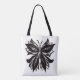 Mariposa abstracta por todo el bolso impreso de tote con un dibujo de tinta que representa a este hermoso insecto con raras alas de un tirón sombreado en negro, blanco y puntos. Esta hermosa criatura es dibujada en un tono similar a los tatuajes.
