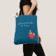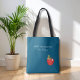 Imagine surprising your favorite teacher with this fun and heartwarming bag or buy it for yourself. Design features a customizable BEST.TEACHER.EVER saying and name along the top. It also includes cute, fun image of a bookworm reading a book on top of a red apple with a white heart in a watercolor style. The background is blue. Customize any of the elements. Perfect item to take everywhere!