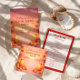 Set the vibe for a sun-soaked getaway with this Tequila Sunrise–inspired bachelorette design, featuring a warm tropical sunset palette, palm silhouettes, and vibrant cocktail illustrations. Perfect for Miami weekends, beach destinations, or any girls’ trip that starts at golden hour and ends with margaritas.