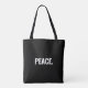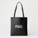 Texto en blanco y negro de paz minimalista contra la guerra simple moderna y elegante Bolsa de Tote. Texto blanco personalizado sobre fondo negro.