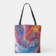 A tote bag with a dynamite paint swirls with tiny flowers, gold stars and sparkles, the design was created digitally using a computer and special effects for this final result.
