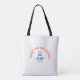 Bolso de tote Toast On The Slopes Après Ski Club Retro Rojo y Azul cielo. Personaliza con el año de tu viaje de esquí y la ubicación del resort. Perfecto para un viaje de invierno de grupo a un destino o como favor para una fiesta de despedida de soltero o soltera con tema de esquí o como recuerdo de un viaje pasado. Diseñado para coincidir con nuestra colección Retro Rojo y Azul cielo Toast On The Slopes Après Ski Club.