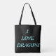 C'est un tote bag spécial avec un dessin numérique "Dragon dans le style steampunk" d'un coté et de l'autre une phrase "I LOVE DRAGONS".