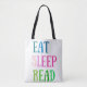 Este tote de LECTURA DE DORMIR DE COMIDA es un tote con letras de color con un gran mensaje para alguien a quien le encanta leer!