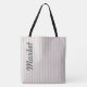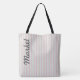El diseñador pinstripe bolsa de mercado gris claro. El texto puede ser personalizado o extraíble. El fondo gris claro se puede cambiar a tu color favorito para convertirlo en tu propio color. Hermosa bolsa de regalo de tela.