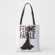 Este tote presenta un ilustracion fascinante inspirado en Rita Hayworth y las hembras fatales de noir de película.