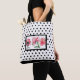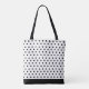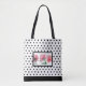 Un punto de polka blanco y negro con flores enmarcadas lo convierten en un tote clásico.