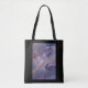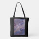 Tote de hombro con galaxia azul y violeta con estrellas blancas dispersas. El arte original de Ray Bean es acuarela sobre papel acuarela.