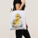 Una linda bolsa de tocador con un ilustracion de acuarela de pato bebé.