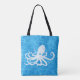 Pulpo de estilo vintage sobre el fondo de las olas para un tote de playa que destaca.