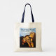 Tote simple con mango azul marino que presenta la portada del número 4 del Heart of Flesh Literary Journal — la pintura "Naomi, Ruth, and Orpah" de Veronica McDonald. Impresión idéntica en ambos lados. Heart of Flesh Literary Journal es un diario cristiano que publica poesía, historias y arte.