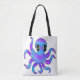 Bolso De Tela Tote transversal - Octopus violeta azul (blanco)